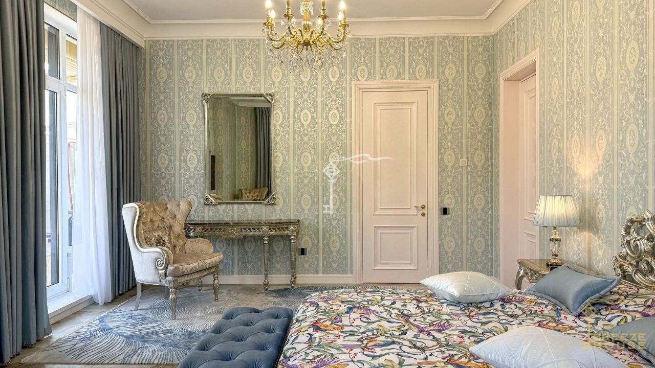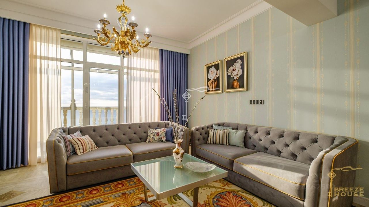 В 2022 году выполнен новый ремонт с акцентом на качество и эстетику. На полу плитка Roberto Cavalli, стильная мебель и светильники из Италии создают атмосферу статусного южного жилья. Панорамные окна в гостиной дополнены элегантными шторами на электроприводе.