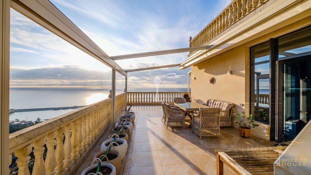 Огромная терраса площадью 140 м² превращает квартиру в приватный видовой оазис над городом: здесь одинаково приятно встречать рассветы, проводить вечера с друзьями и просто наслаждаться южным воздухом.