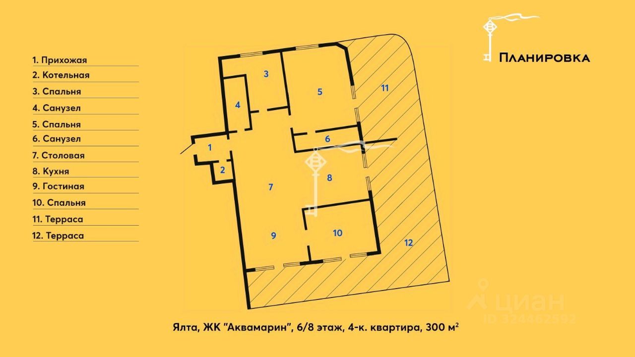 Дизайнерская четырехкомнатная квартира площадью 300 м² с большой террасой с видом на море на 6 этаже современного комплекса ''Аквамарин''.