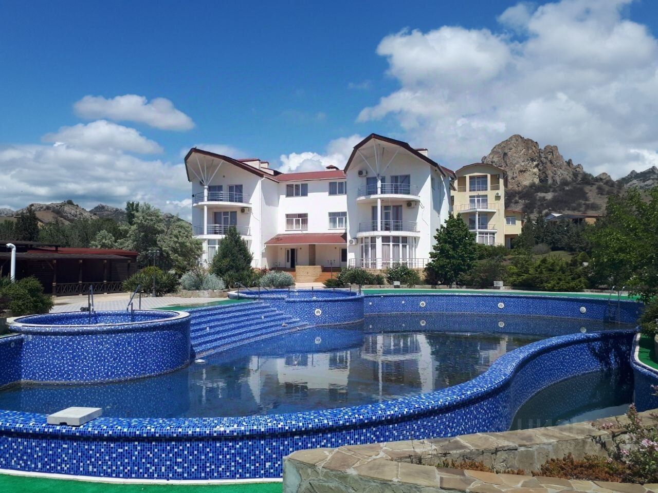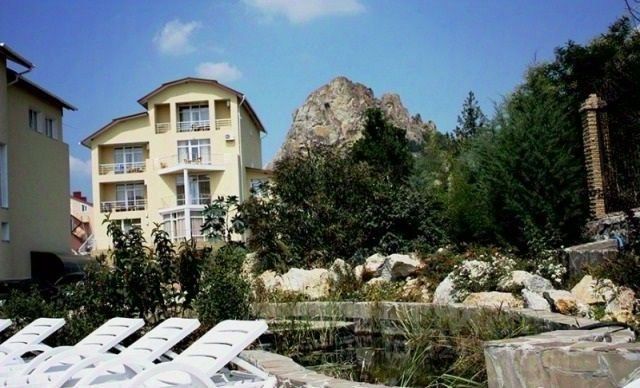 Современный отель, расположенный на юго-западной Феодосии в 300 м от оборудованного галечного пляжа, в 10 мин езды от самого Коктебеля. Земельный участок общей площадью 1,6 га га назначение: гостиничное обслуживание, на которой расположены 4500 м. Кв. Строений: бары различного типа, ресторан, бильярдная, сигарная, бассейн, сауна, конференц-зал, охраняемая парковка вмещает 250 туристов, номерной фонд 55 комфортабельных номеров, соответствующих последним тенденциям дизайна, интерьера и качественного отдыха: стандарт, джуниор, сьют, де люкс, семейный, апартаменты, Viр номер. 15 стандартных номеров в отдельно стоящих коттеджах остальные номера находятся в трехэтажных корпусах. Все строения капитальные, построены из природного камня на прочном фундаменте. Площадь номеров от 20 до 75 м2, Viр-номер 300 м2, все полностью меблированы, оборудованы кондиционерами, холодильниками и всем необходимым для приема гостей.