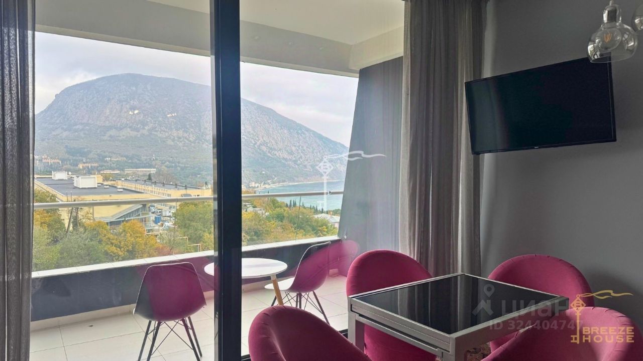 Просторная студия площадью 44 м² с ремонтом и видом на море и гору Аю-Даг в комплексе ''Алтея'', расположенная в живописном уголке Южного берега Крыма, в Гурзуфе.