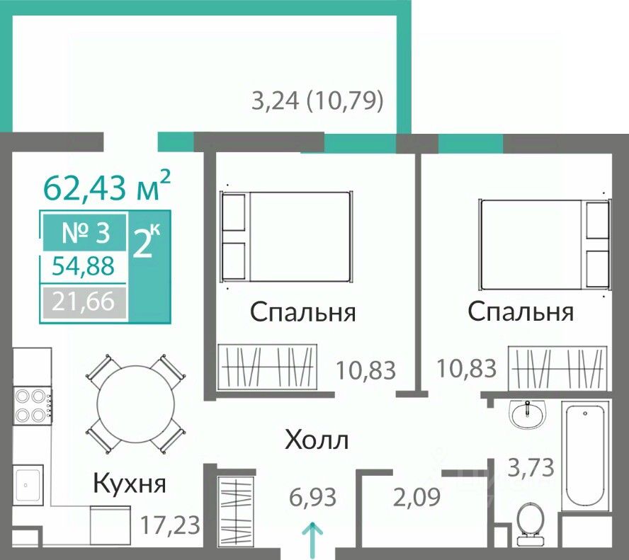Продаётся 2-комнатная квартира в строящемся доме (13 этап (Секция Б8)), срок сдачи: I-кв. 2027, общей площадью 54.88 кв.м., на 1 этаже. ОТКРЫВАЕМ НОВЫЕ ГОРИЗОНТЫ