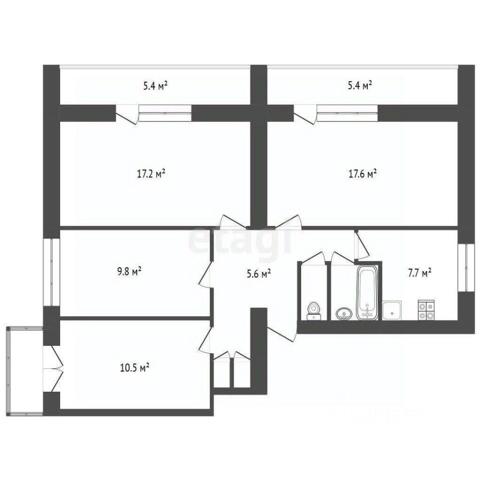 Площадь: 77,3 кв.м Рациональная планировка: раздельный санузел, изолированные комнаты, кухня Две лоджии и балкон - много света и пространства Частичный ремонт, центральное отопление