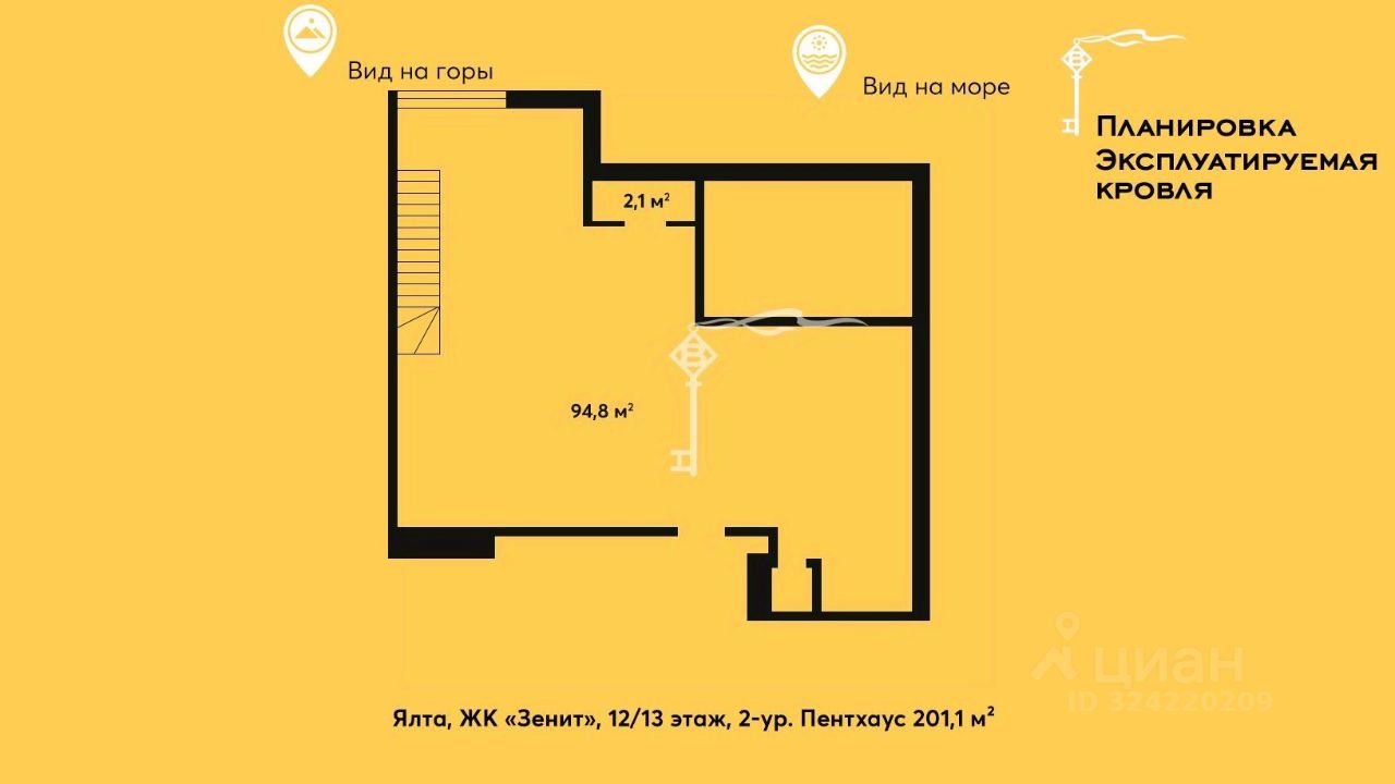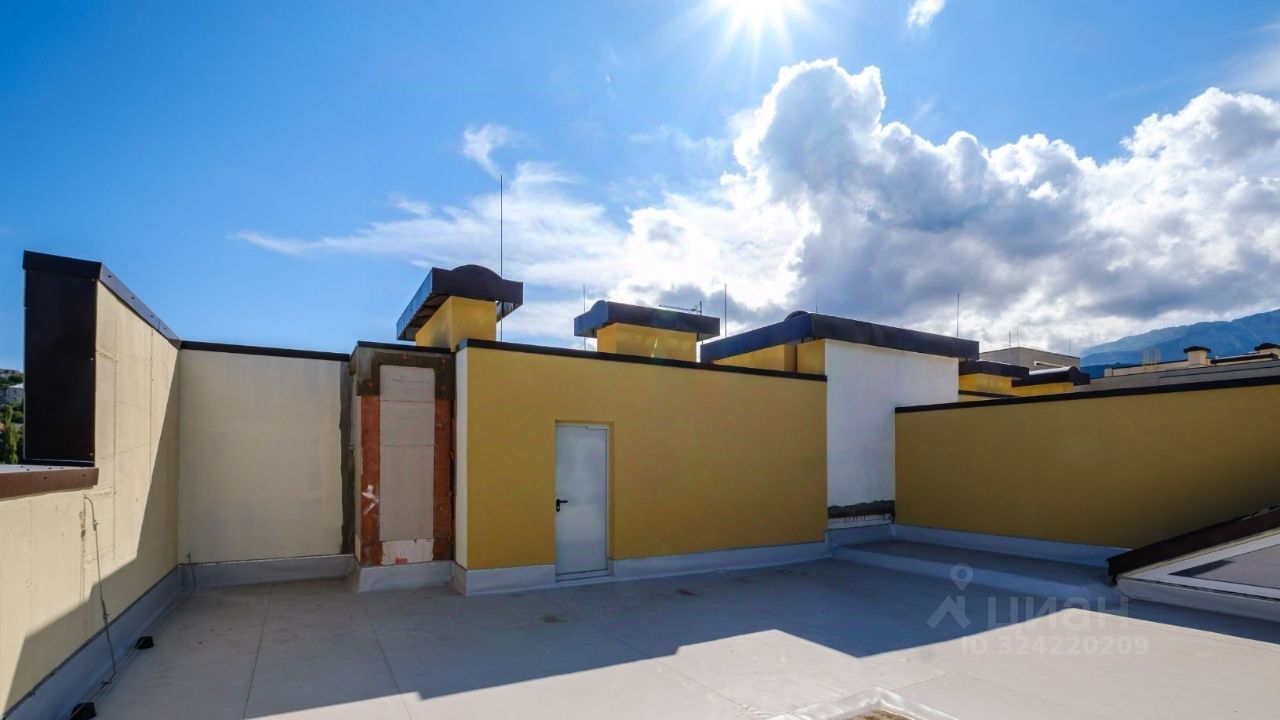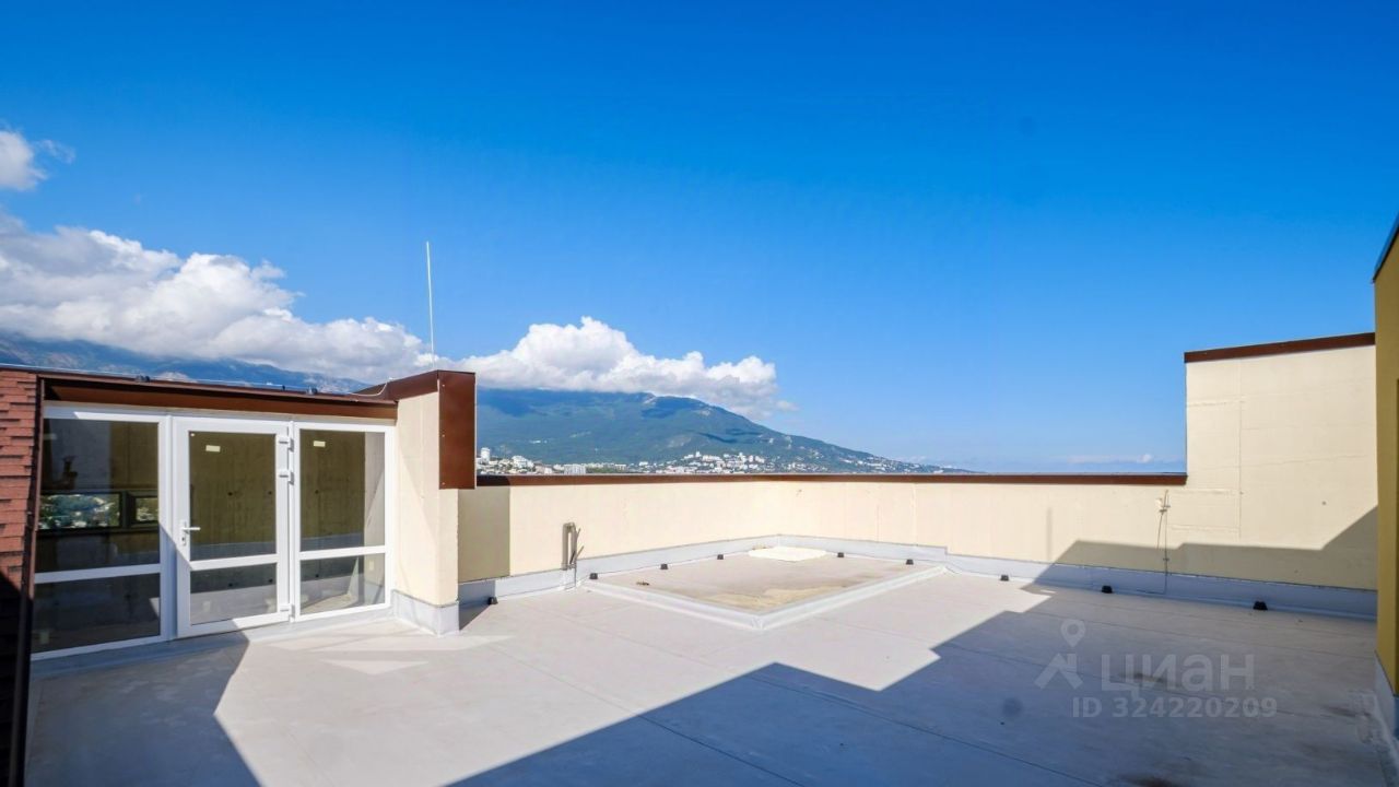 Двухуровневый пентхаус с теплым выходом на эксплуатируемую кровлю с бассейном и панорамным остеклением с видом на Ялту и море, расположенный в спальном районе Ялты в жилом комплексе комфорт-класса Зенит.