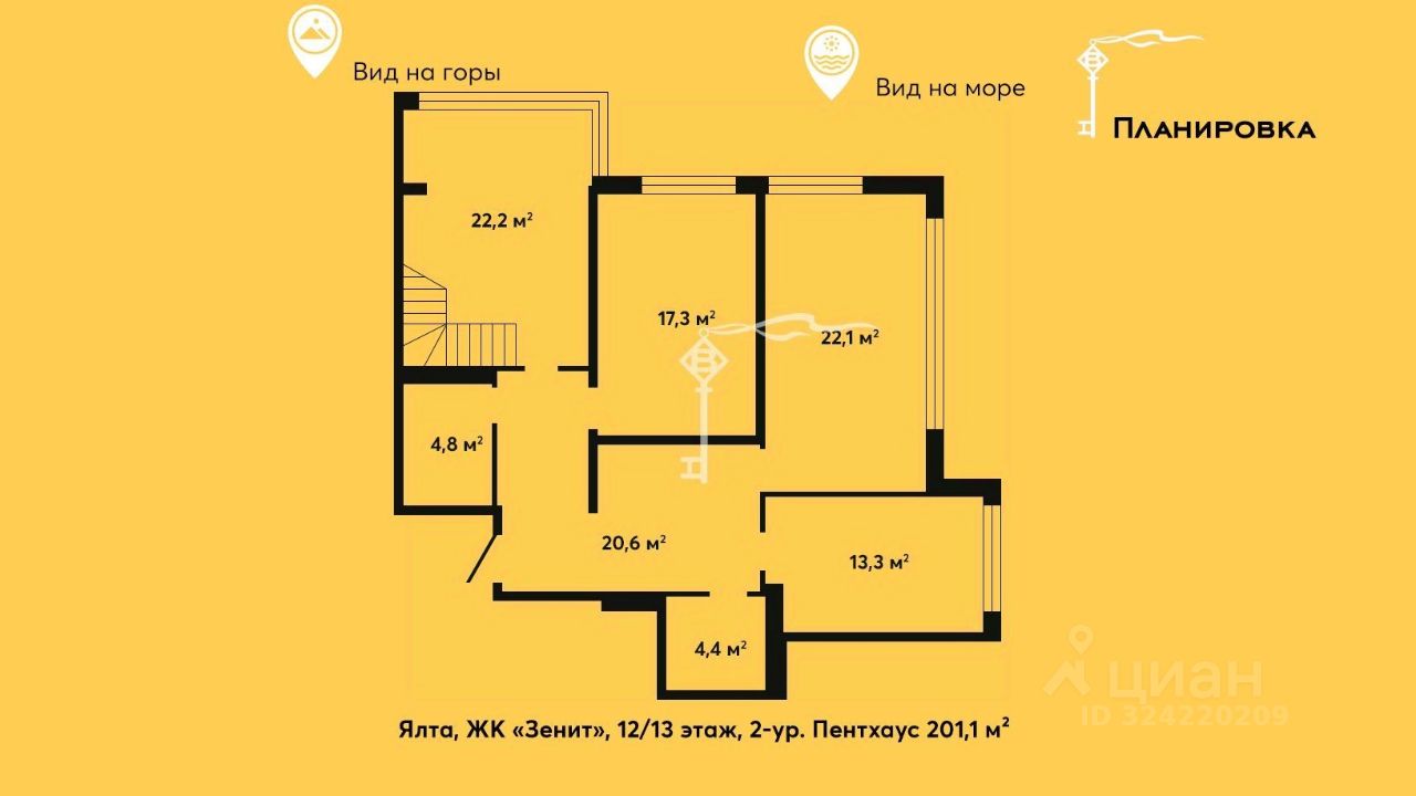 Общая площадь пентхауса 201,1 м²,