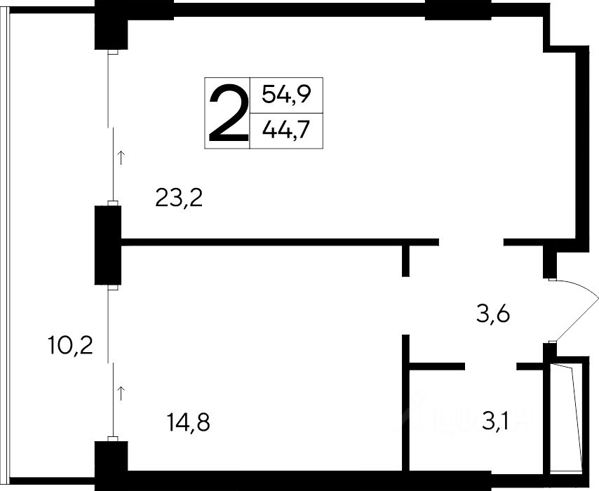 Продаются 2-комнатные апартаменты в строящемся доме (Дом 35 (Этап 1)), срок сдачи: II-кв. 2029, общей площадью 54.9 кв.м., на 9 этаже.