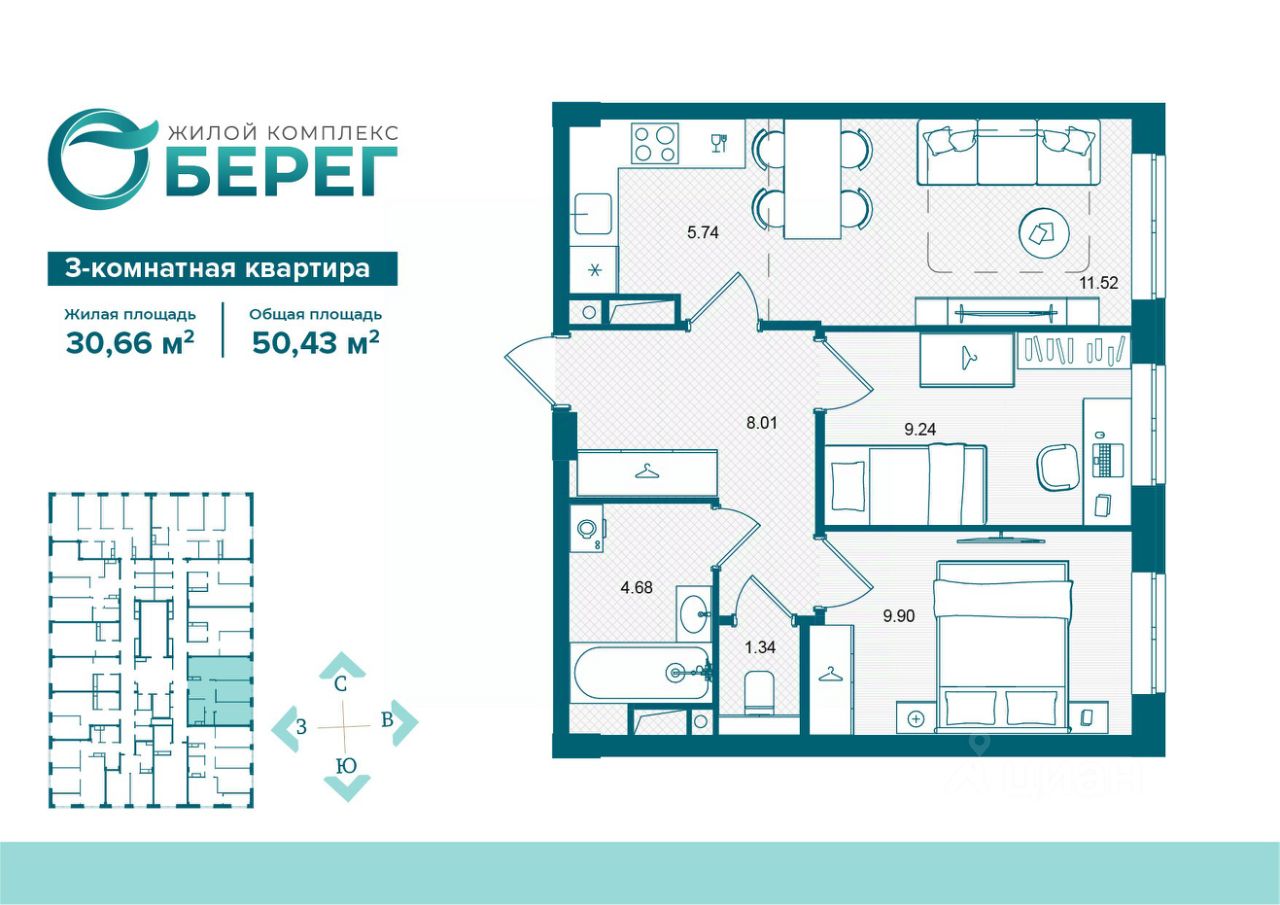 Продаётся 3-комнатная квартира в строящемся доме (поз.2), срок сдачи: IV-кв. 2027, общей площадью 50.43 кв.м., на 8 этаже. Современный жилой комплекс ЖК ''О' Берег'' на ул. Флотской, воплощает идею комфортной, доступной и продуманной городской среды. Комплекс расположен вблизи набережной, в экологически благоприятной зоне города. Панорамный вид на воду и зелёные аллеи усиливают ощущение уюта и создают атмосферу природной гармонии прямо в черте города.