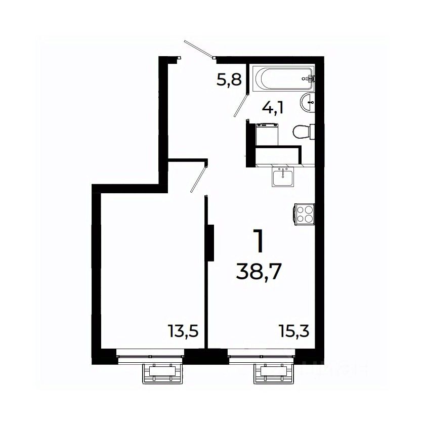 Продается 1-комнатная квартира площадью 38,7 кв.м на 16 этаже 19 этажного дома 3 в ЖК Сормово Парк.