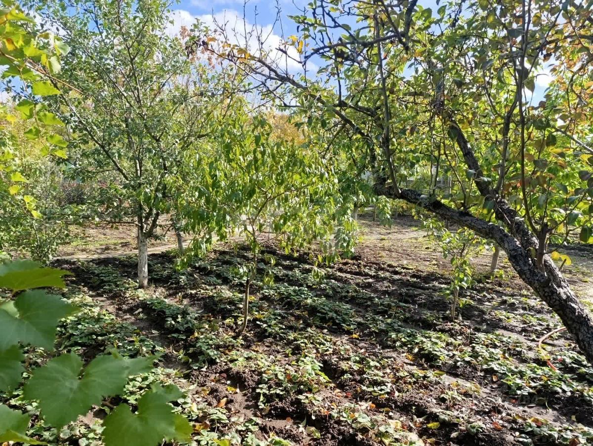 Зеленые насаждения, с множеством разнообразных фруктовых деревьев.