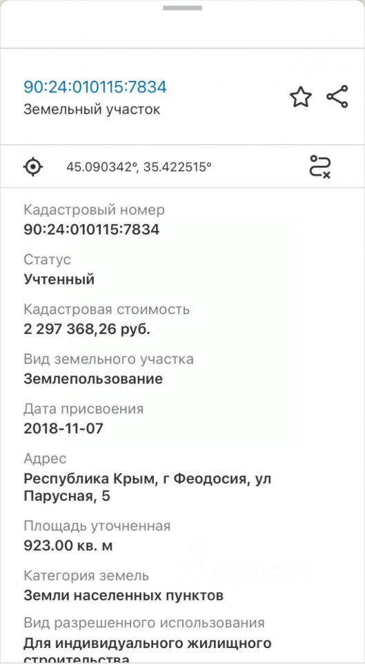 Предлагаю земельный участок 923 кв метров, по ул Парусная, г Феодосия. Участок 500 метров от песчаного пляжа. Коммуникации вдоль участка: вода, электричество, газ. Соседи живут круглый год. Документы РФ, сделано межевание. Кадастровый номер 90:24:010115:7834.