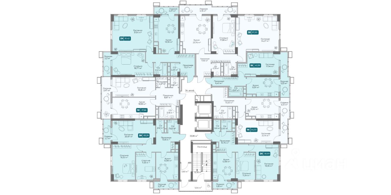 Уникальная 3-комнатная Квартира 20 площадью 83,29 кв.м. в ЖК ''Золотой Берег'' — 800 метров или 10 минут до моря, современный дизайн и все условия для комфортной жизни!