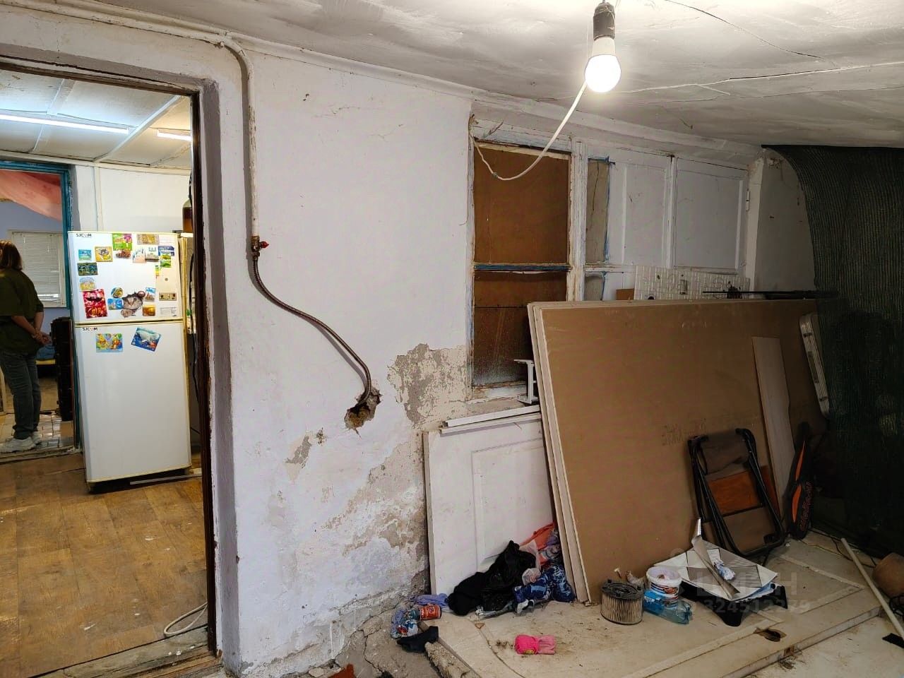 Продаётся квартира на земле с собственным двором площадью около 1 сотки и сараем. В жилом помещении две изолированные комнаты площадью 9 и 14 квадратных метров, между ними расположено проходное помещение, которое использовалось как рабочий кабинет. Кухня занимает 8 квадратных метров, ванная комната и туалет совмещённые. При входе в дом есть веранда площадью 12 квадратных метров, которую можно использовать как дополнительную комнату или кухню без необходимости ремонта. Отопление осуществляется электричеством, газ подведён только к плите. Потолки в комнатах высотой 2,5 метра, а на кухне и веранде — 2,10 метра. В комнатах сделан косметический ремонт. Квартира расположена в центре села, рядом есть магазины, школа, пункты выдачи заказов ''Озон'' и Wildberries, а также ФАП и почта. Объект продаётся целиком, не долевая собственность. Оплата возможна только наличными, так как земля находится в муниципальной собственности и не подходит под ипотеку или сертификаты — банк требует право собственности на землю, чего здесь нет. Срочная продажа, возможен разумный торг при осмотре. Один взрослый собственник.