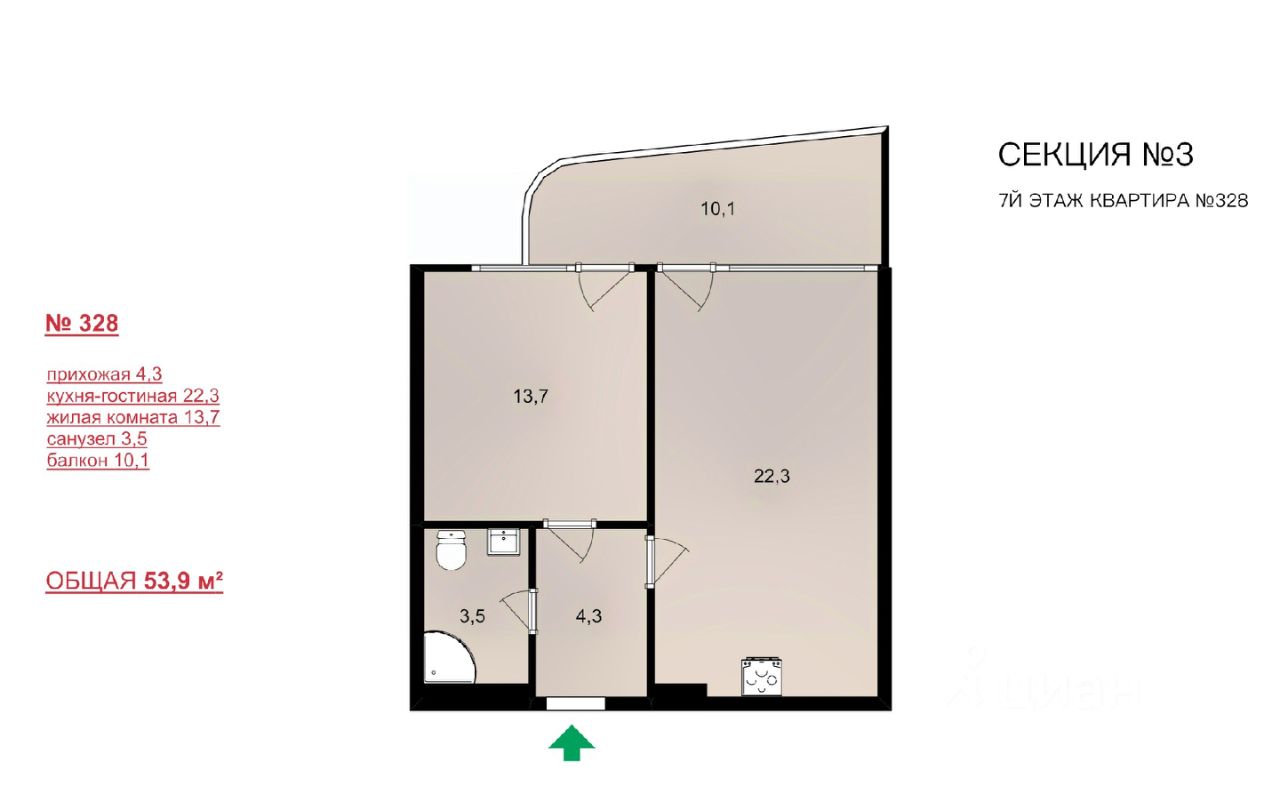 Общая площадь53,9 м2