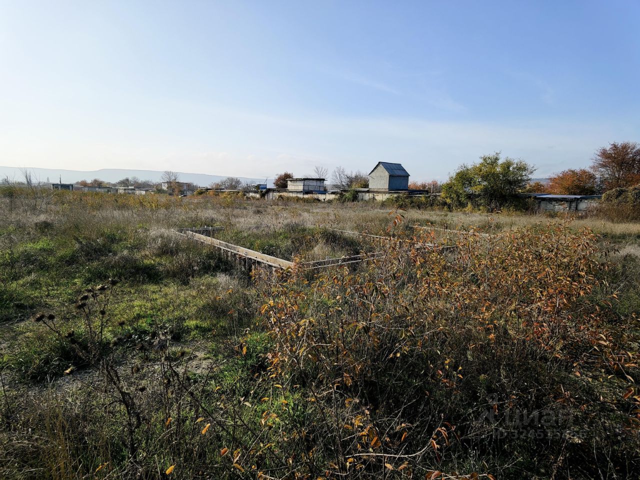 На участке расположены 4 готовых строения по границе участка.