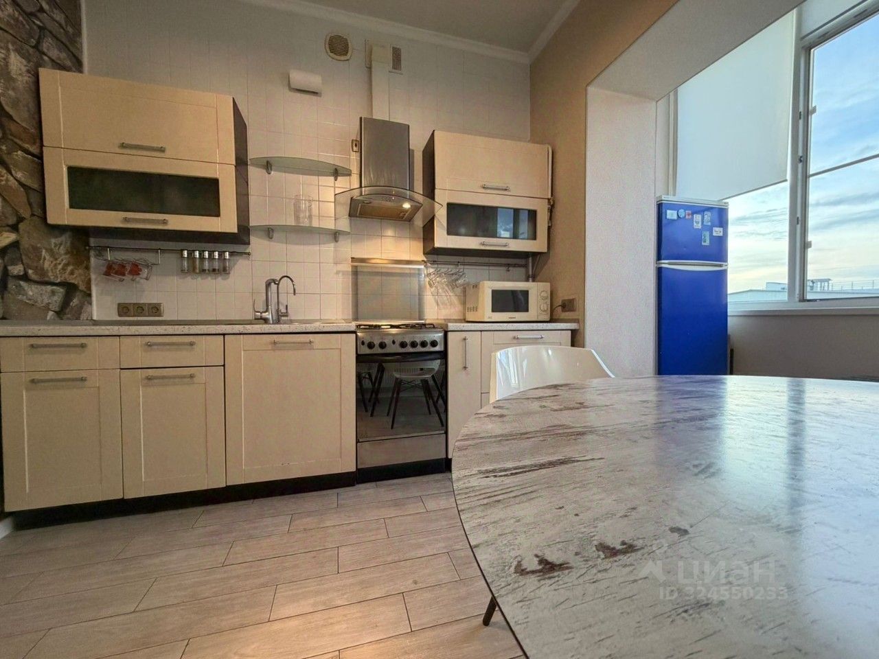 Современная планировка, кухню 11м2 включающая лоджию, комнаты 21,6 м2, 11,8м2. Хороший качественный ремонт, практически все что на фото остается новому собственнику.