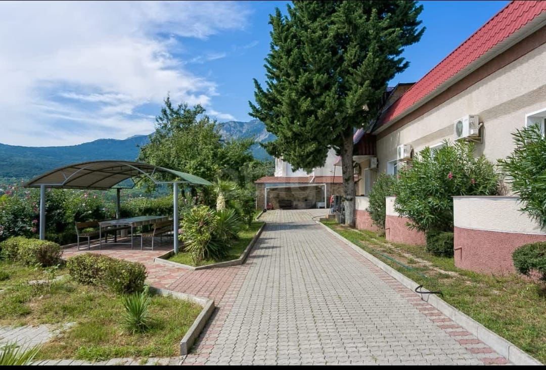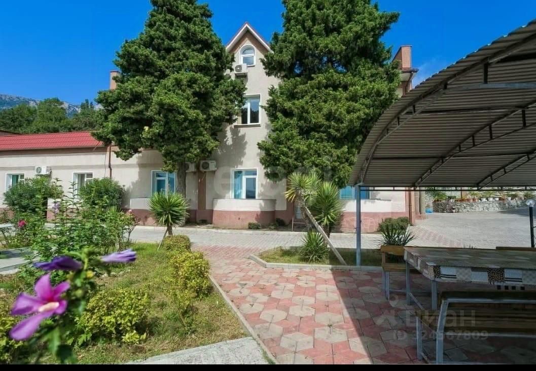 Продается шикарное домовладение/гостиница плoщaдью 1000 кв.м. Домовладение расположено на земельном участке общей площадью 31 сотка (22 + 9, можно ещё доотвести 3 сотки с администрацией согласовано). Объект недвижимости включaeт в сeбя 7 полноценных квартир со своей кухней и санузлом, и 7 номеров на втором этаже, каждый со своим санузлом. И на третьем этаже большая трёхкомнатная полноценная квартира - две раздельные спальни, зал 35 кв. м., кухня, два с/у, большая прихожая. балкон с видом на море и горы.