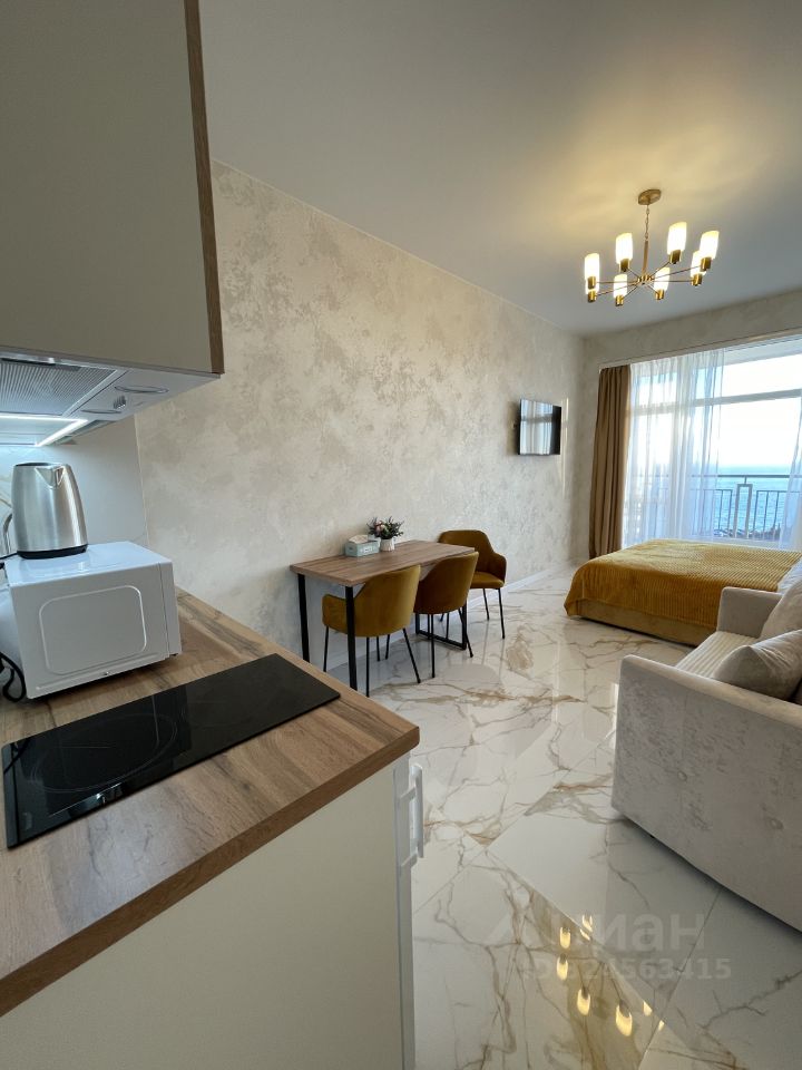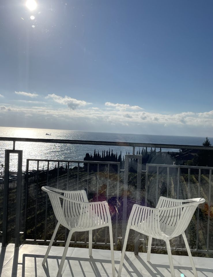 Студия с красивым видом на море в Ялте с дизайнерским ремонтом, двуспальная кровать с ортопедическим матрасом, ТВ. Кресло-кровать. Полностью обустроенная кухня. Микроволновая печь, электроплита, чайник, холодильник, стиральная машина. Тёплые полы. Высокоскоростной интернет. Выполнен дорогостоящий качественный ремонт. Балкон с потрясающим видом на море, горы и виноградники. Здесь вы будете наслаждаться рассветами и закатами. Лёжа на уютной кровати Вы можете созерцать вид на море и виноградники. Вид, который останется в вашем сердце навсегда! До пляжа Дельфин 5 минут ходьбы. Парковка на территории комплекса ЖК Россия. До Набережной Ялты 5 минут на авто или 15 минут прогулки вдоль моря, наслаждаясь морским бризом.
