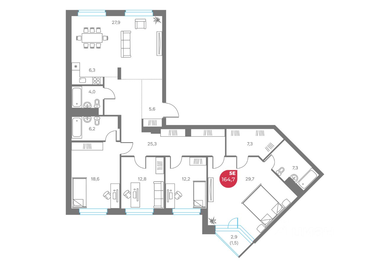 Общая площадь164,7 м2