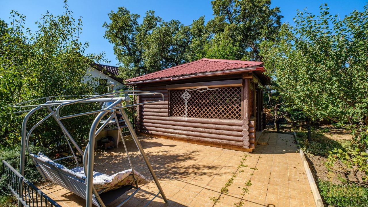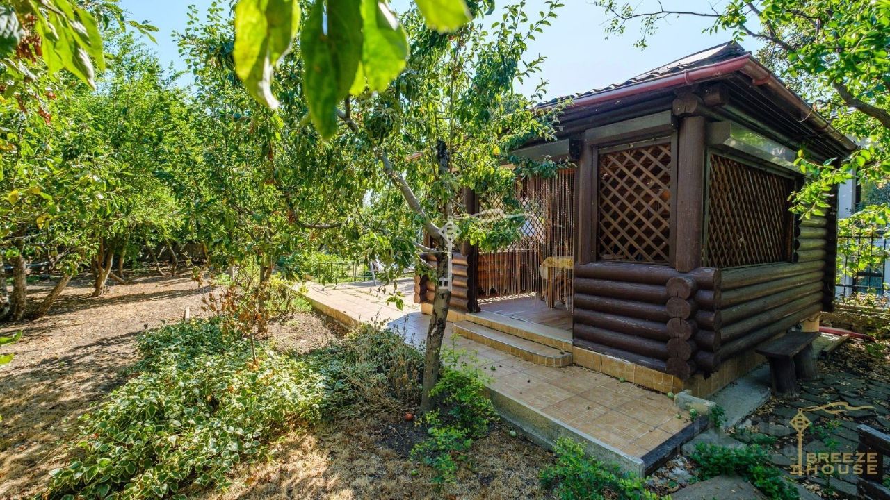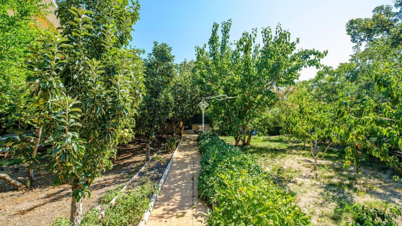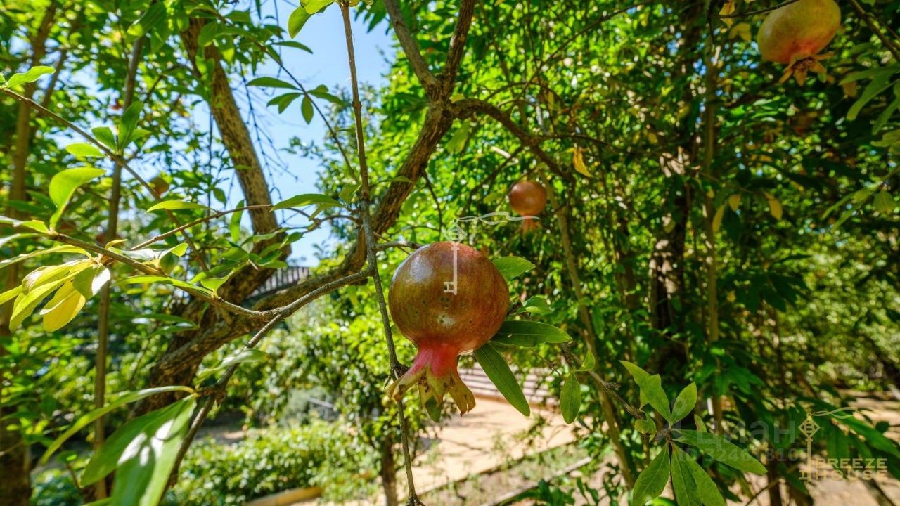 Ровный участок 14 соток утопает в зелени и ароматах спелых фруктов. Здесь растут яблони, персики, гранаты, черешня, виноград — все взрослые, плодоносящие, готовые радовать вас урожаем.