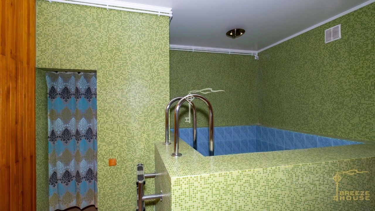 -1 этаж: кухня-столовая, сауна с ледяной купелью, душевые, санузел, котельная с промышленным холодильником, дополнительный вход, комната для персонала или охраны. -Центральный вход в дом находится на 2 этаже , здесь же — просторный гараж, гардеробная, гостиная с действующим камином, три спальни, санузел. -3 этаж: две спальни, санузел, две кладовые, серверная, холл с бильярдной зоной и выход на террасу 40 м² с захватывающим панорамным видом на Ай-Петри.