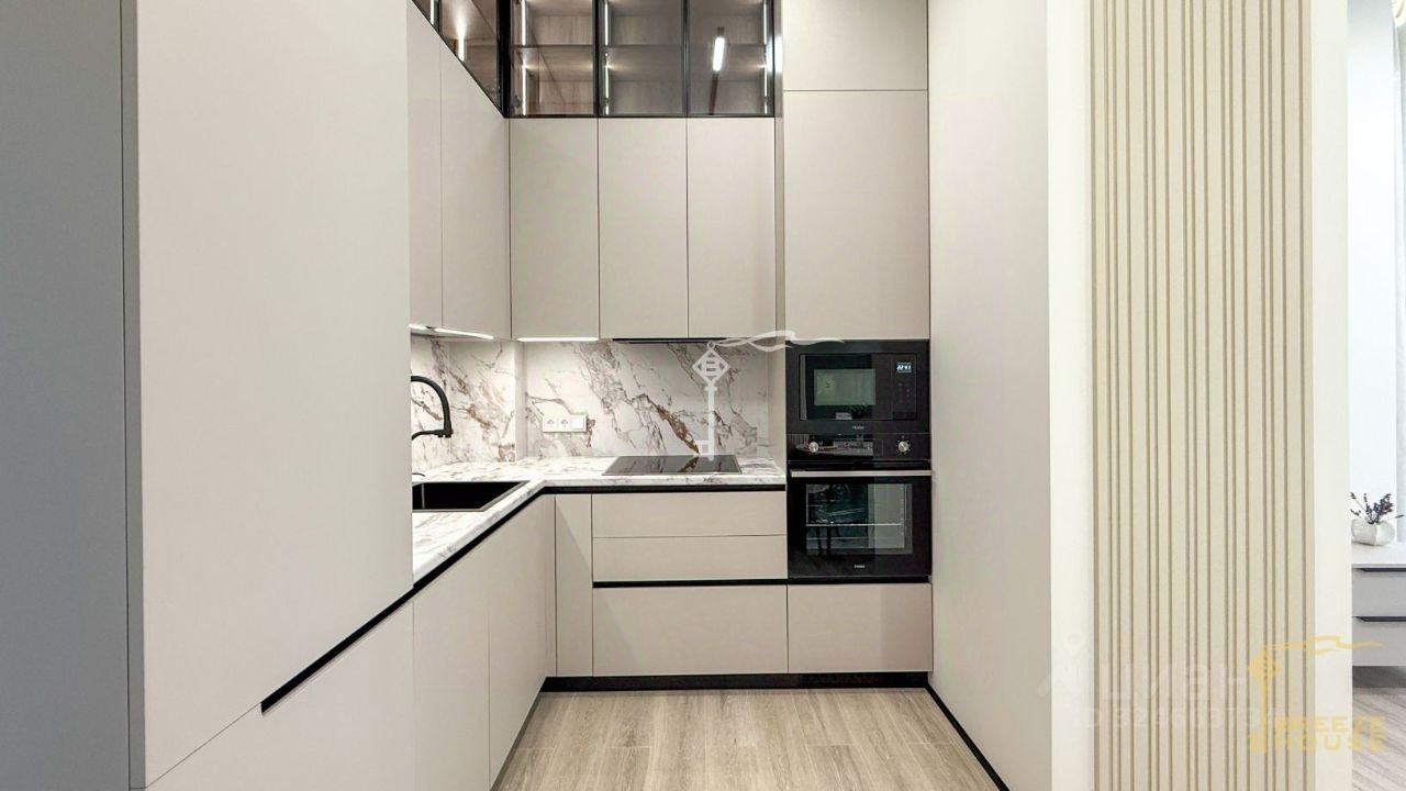 Квартира на финальной стадии дизайнерского ремонта — свежая отделка в светлых и уютных тонах уже готова для комфортного проживания: скрытые двери, изящная отделка, продуманное освещение.