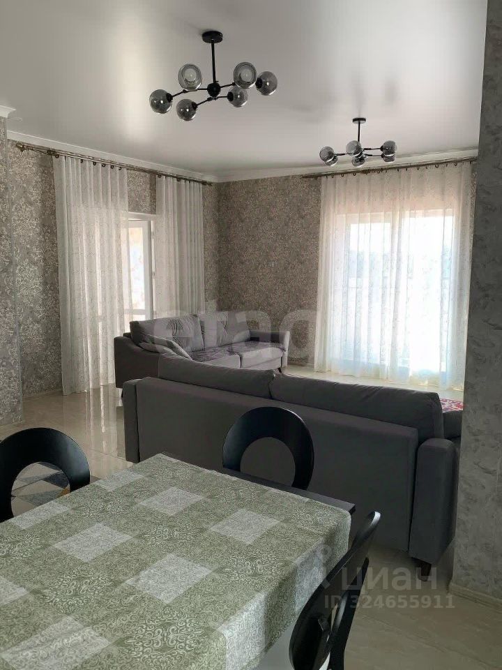 В доме четыре больших светлых комнаты с французскими окнами в пол. Большая веранда с окнами в пол. Дом полностью оборудован современной техникой и современной мебелью. Интерьер, современный, сдержанный, в стиле минимализм. Отдельная кухня с кухонным гарнитуром. Большой двухкамерный холодильник, печь. Два санузла с итальянской сантехникой, мебелью.