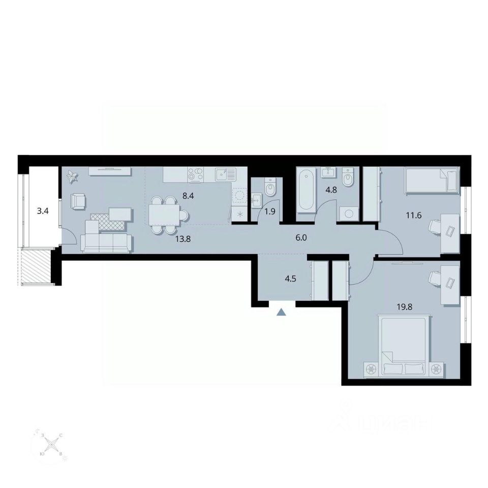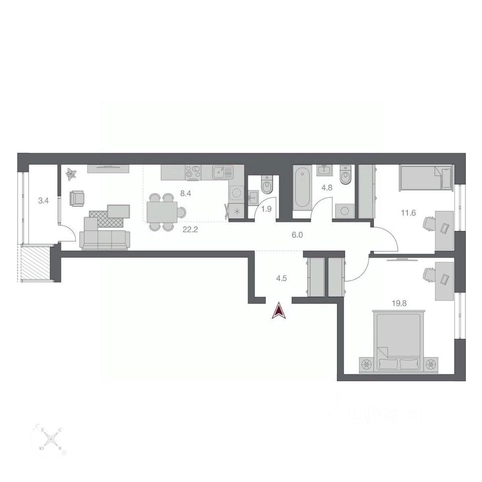 Жилая площадь45,2 м2