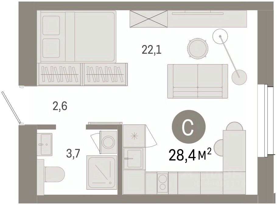Студия в проекте Город-на-озере. Особенности планировки: предчистовая отделка. квартиры в нашей базе: ГРД01-Ж5.4.1.