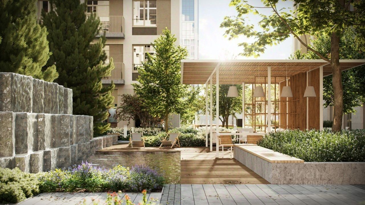 Локация квартала уникальна: с одной стороны он соседствует с активным уличным фронтом, а с другой — с тихим и спокойным озером с обильным озеленением. При этом участок неровный, перепад высот достигает 30 метров — это высота восьмиэтажного дома. Для разработки проекта мы пригласили лучшие архитектурные бюро из Китая: AEDAS и Turenscape. AEDAS специализируются на создании качественных общественных пространств, а Turenscape — на работах с экосистемой водных объектов. Архитекторы учли особенности местности и объединили урбанистический и природный ландшафты. #269db8