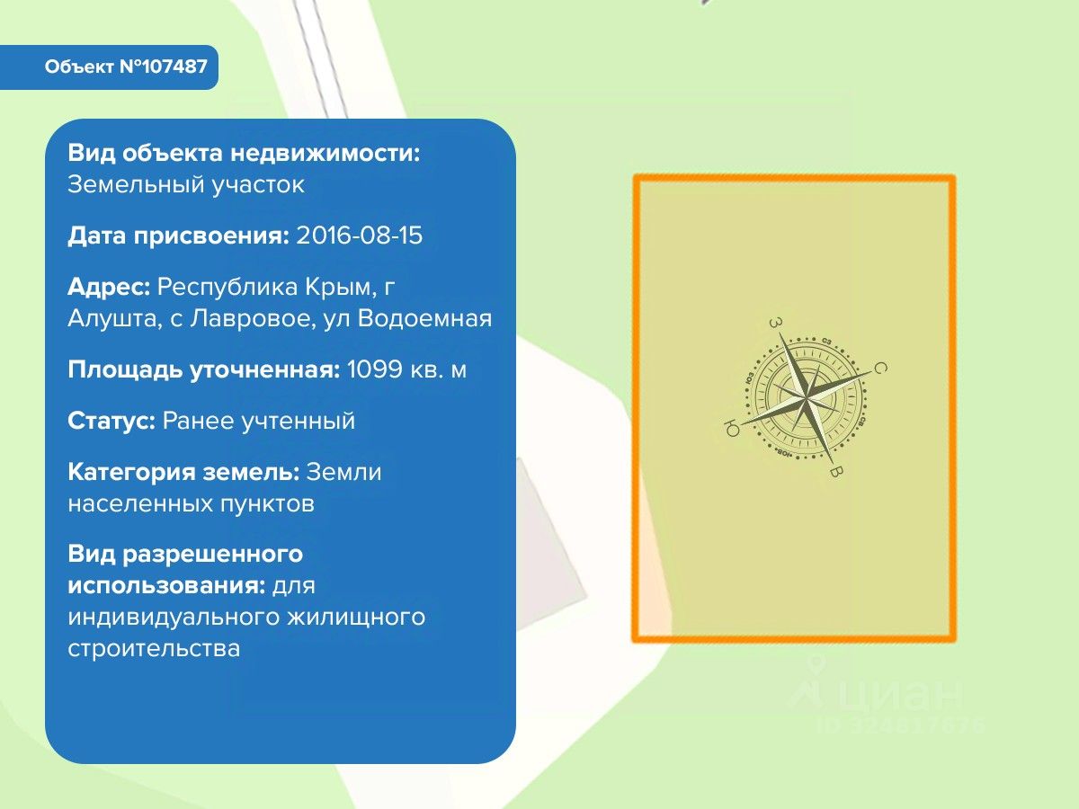 Продается земельный участок в селе Лавровое (Алушта) улица Водоемная.