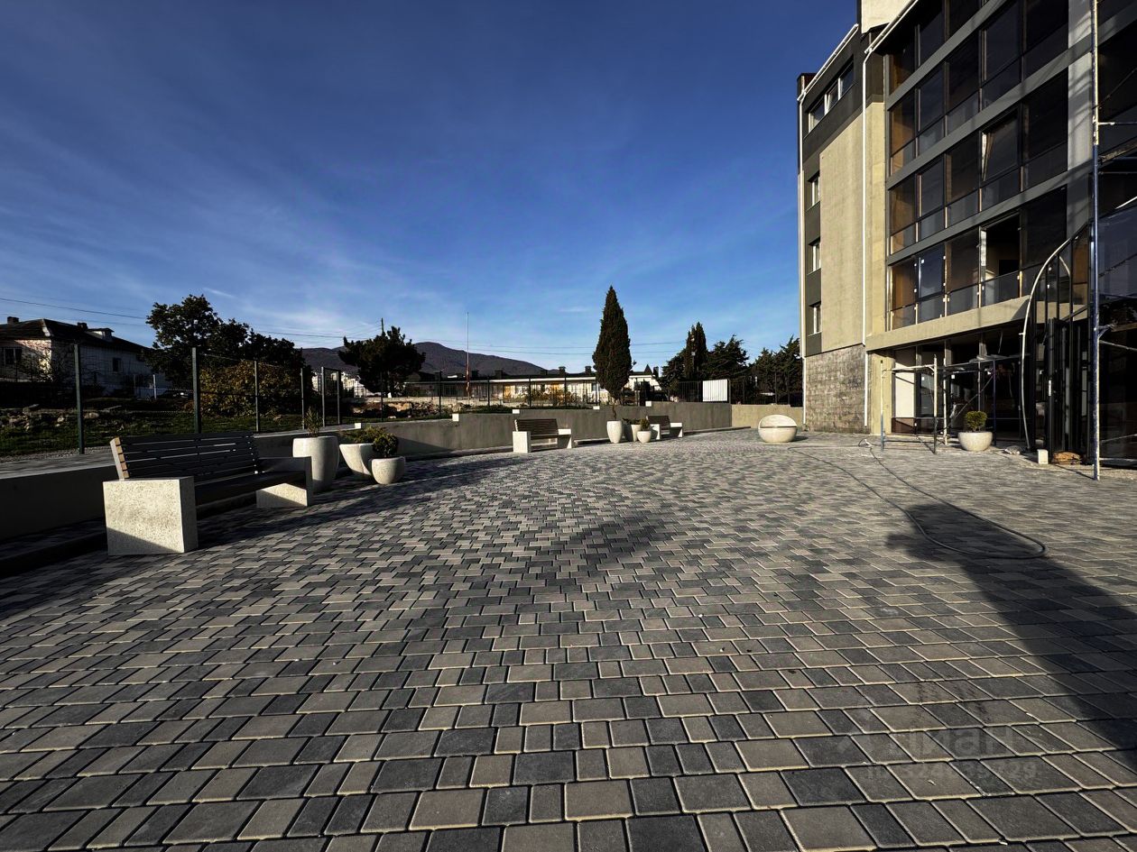 Бoльшaя внутpeнняя пpидомовая территория с ландшафтным дизайном.