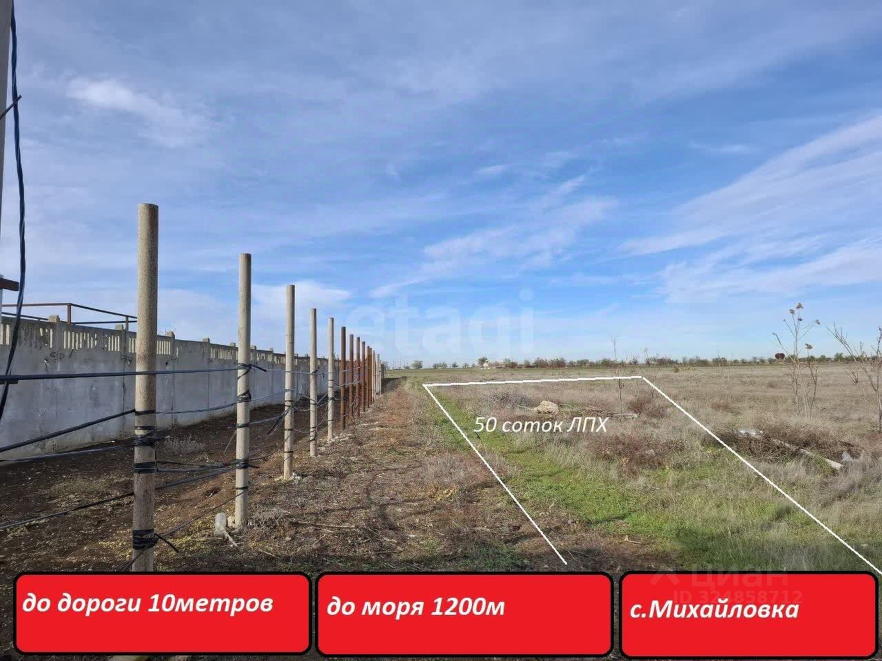 Участок площадью 50 соток расположен в перспективной локацией между поселками Новофедоровка и Михайловка, непосредственно на первой линии от дороги с твердым покрытием, что обеспечивает отличный подъезд в любое время года. Земля имеет правильную прямоугольную форму и статус ЛПХ (личное подсобное хозяйство), . Ключевым преимуществом является близость к морю — всего около 1 километра, а до города Саки — приблизительно 5 километров, что гарантирует доступ к развитой городской инфраструктуре при сохранении всех преимуществ загородной жизни. Почва на участке плодородная, что идеально подходит для разбивки сада, огорода или виноградника.