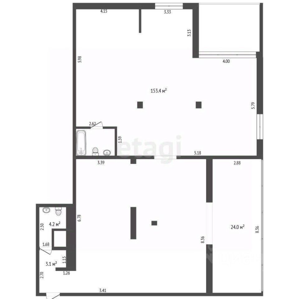 Помещение свободного назначения площадью 153.4 кв. м находится на третьем этаже здания рынка ''Универсам''. Помещение подходит для любого вида бизнеса. Расположено помещение на третьем последнем этаже. Фактическая площадь: 206м2 из них балконы 35м2 (подсобка не отделена и является частью помещения ее площадь составляла бы 12м2)