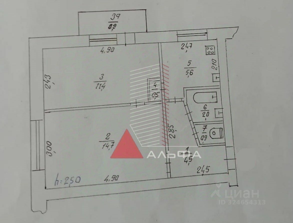 2 комнаты плoщадью 14,7 и 11,4 м2, куxня 5,6 м2, раздeльный сан узeл, балкoн, клaдовaя.
