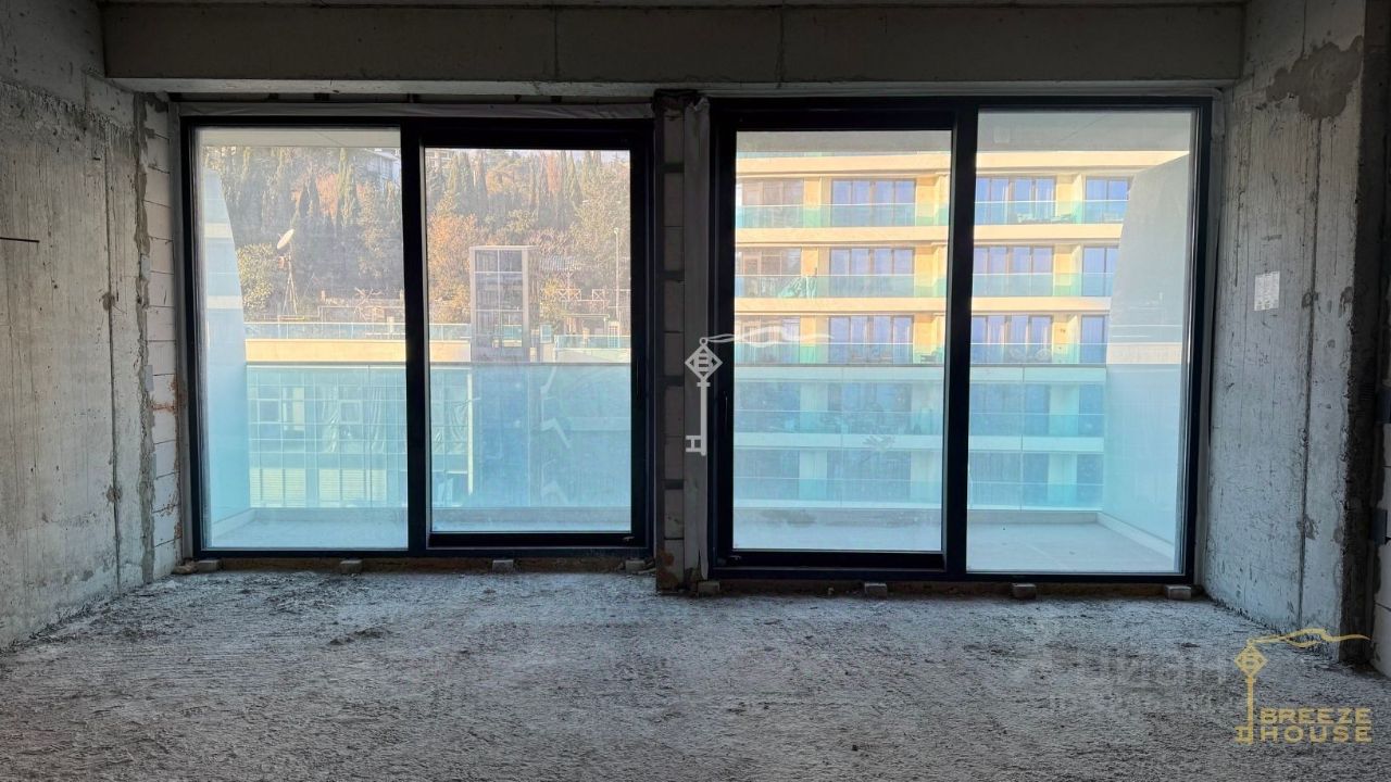Апартаменты в черновой отделке: выполнена стяжка пола, установлены окна и входная металлическая дверь. Проложена электропроводка, подведены вода и канализация до стояков.