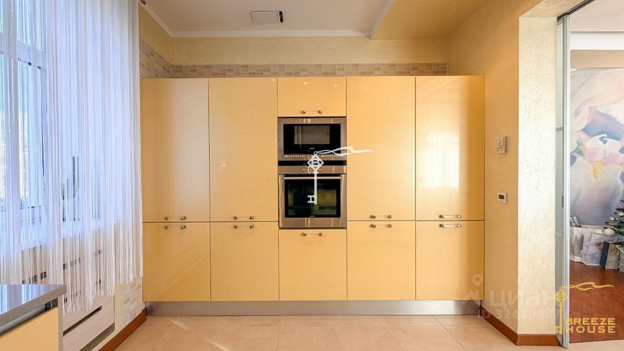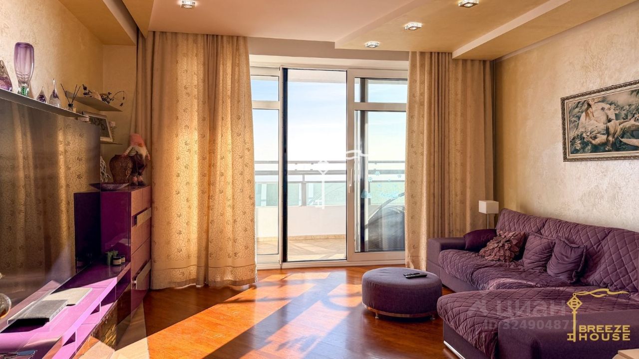 Благодаря панорамному остеклению комнаты наполнены светом, окна выходят на юг. Из квартиры открываются потрясающие виды на море и парк.