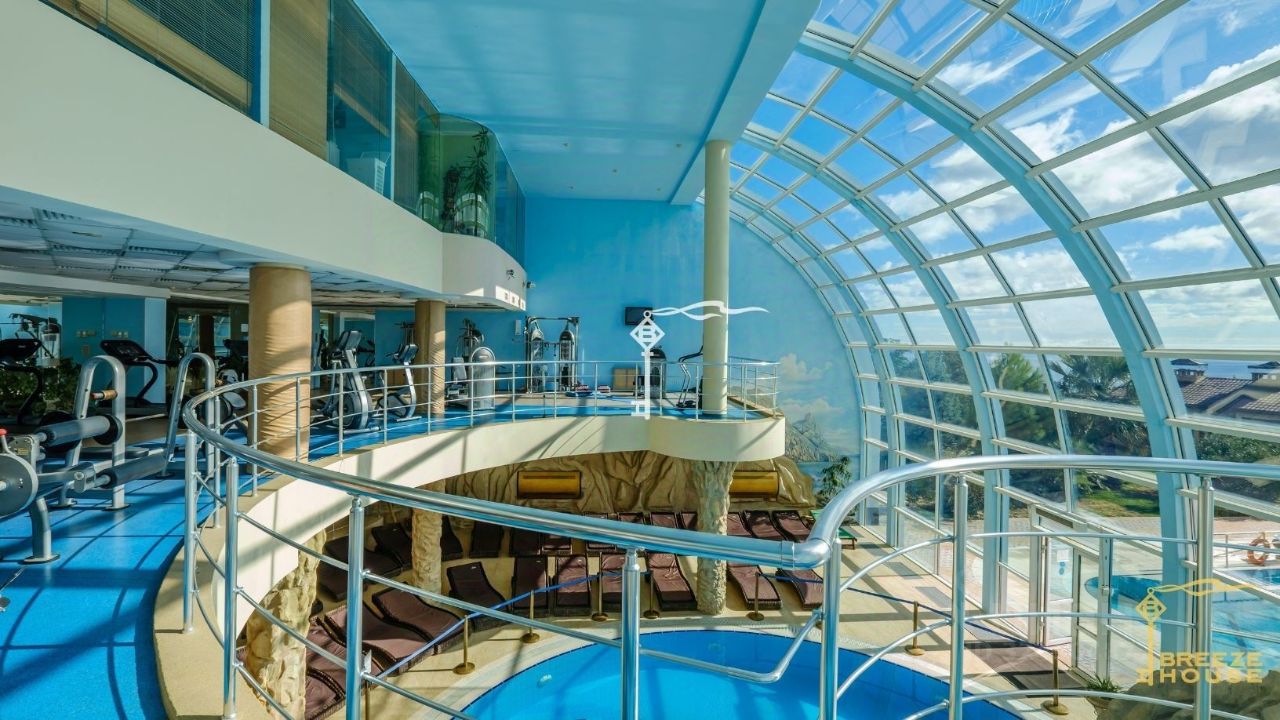 - шикарный SPA-комплекс (9 видов бань и саун) -детская площадка, -зооуголок, -детская комната, -открытый бассейн с джакузи, -собственный парк, -тренажерный зал, -теннисные корты, -подземная парковка.