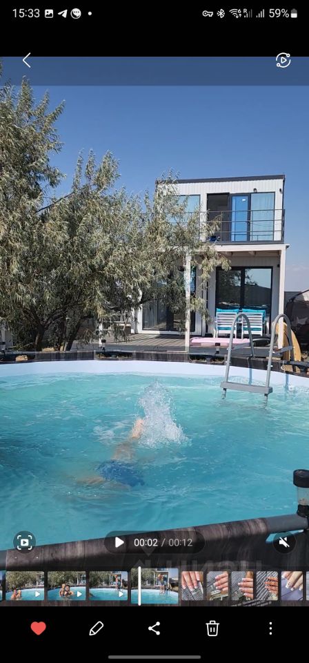 На участке площадью 10 соток расположен бассейн, который станет отличным местом для отдыха на природе. Также есть место для барбекю и зона отдыха с шезлонгами. Со второго этажа открывается прекрасный вид на море. Дом расположен в 200 от моря, рядом пешеходный переход через дорогу со светофором.