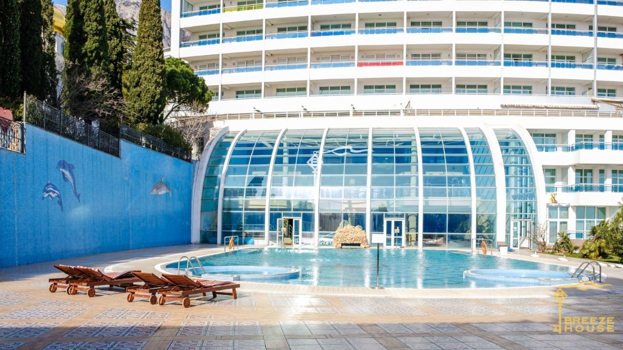Уютная видовая двухкомнатная квартира с террасой и панорамным видом на море, расположенная на 6 этаже в 15-этажном корпусе ''Парус'' элитного жилого комплекса Respect Hall Resort & SPA, в Кореизе, в 800 метрах от живописного побережья Черного моря.