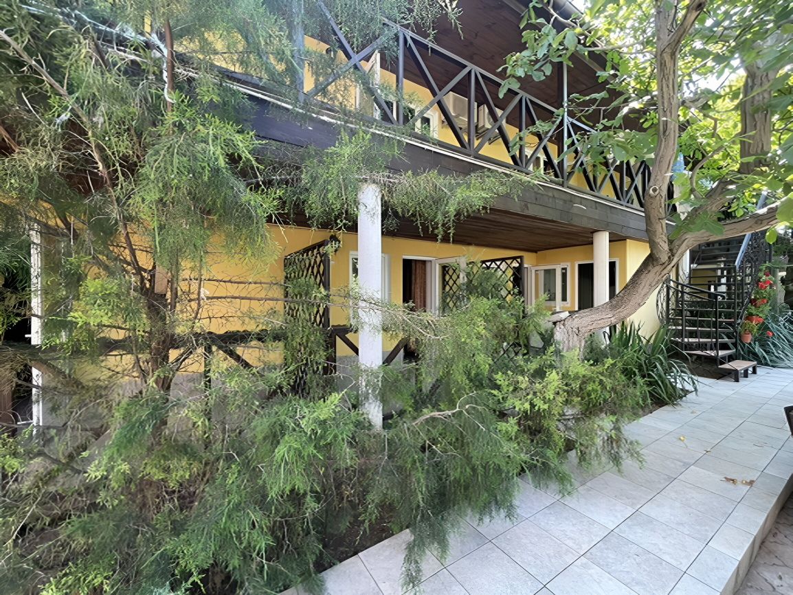 В продаже гостиница 355м2 с жилым домом. Все коммуникации: газ, свет 3 -фаз, центральное водоснабжение, скважина, канализация — септик. Гостиница состоит из 15 номеров с санузлами + столовая. Также на территории есть: кладовка, уличный туалет, душевая, стоянка для машин, беседка, детская площадка, камеры видеонаблюдения. Номера все с отплением, можно сдавать круглый год. Расположена в самом центре Черноморска. До моря- 800м.