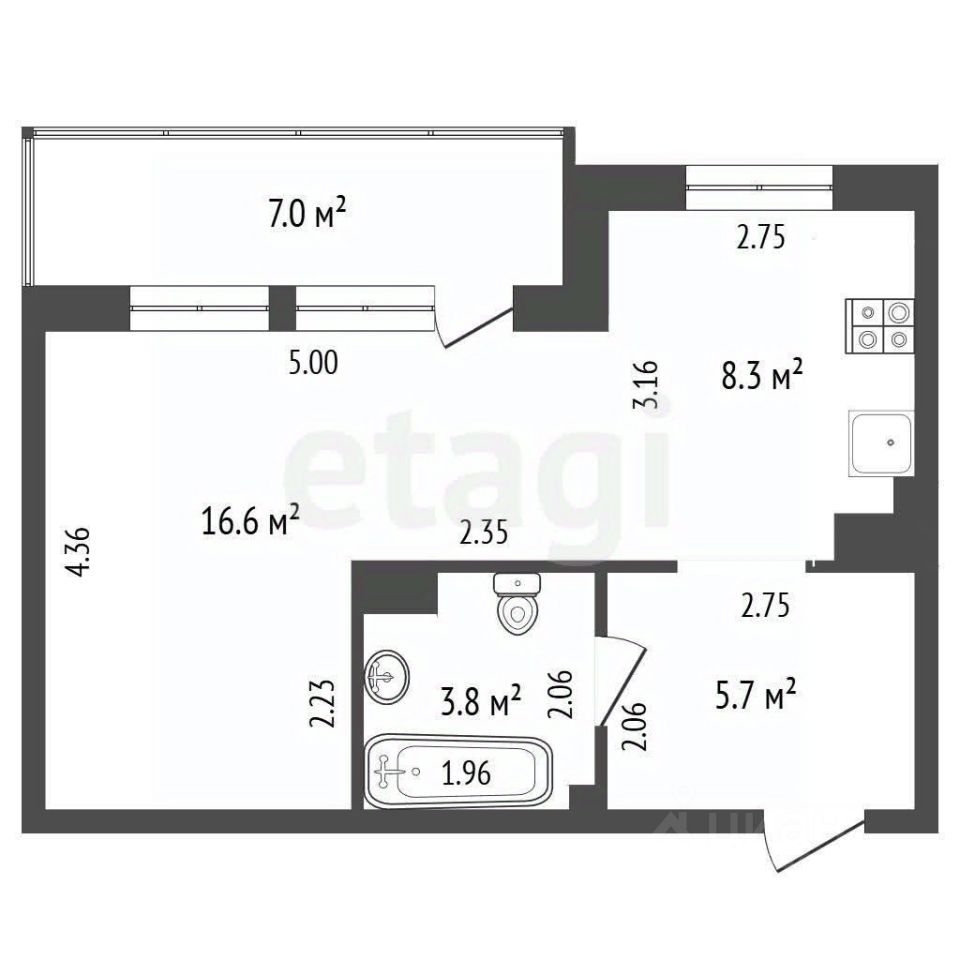 Общая площадь апартаментов составляет 41,4 кв. м, из которых 33,1 кв. м — жилая площадь, а кухня занимает 8,2 кв. м. В квартире имеется совмещенный санузел и лоджия, что добавляет удобства в повседневной жизни. Центральное отопление обеспечит тепло в холодные месяцы.