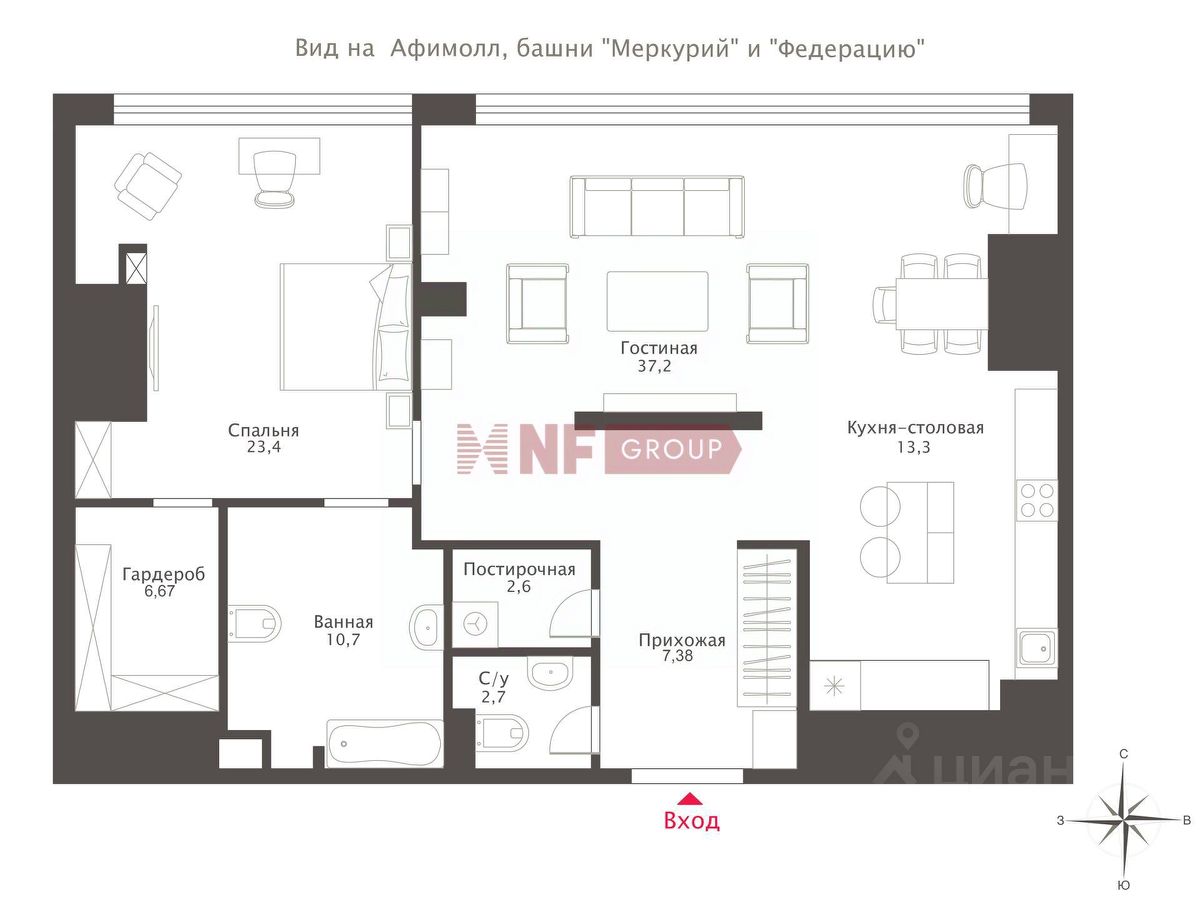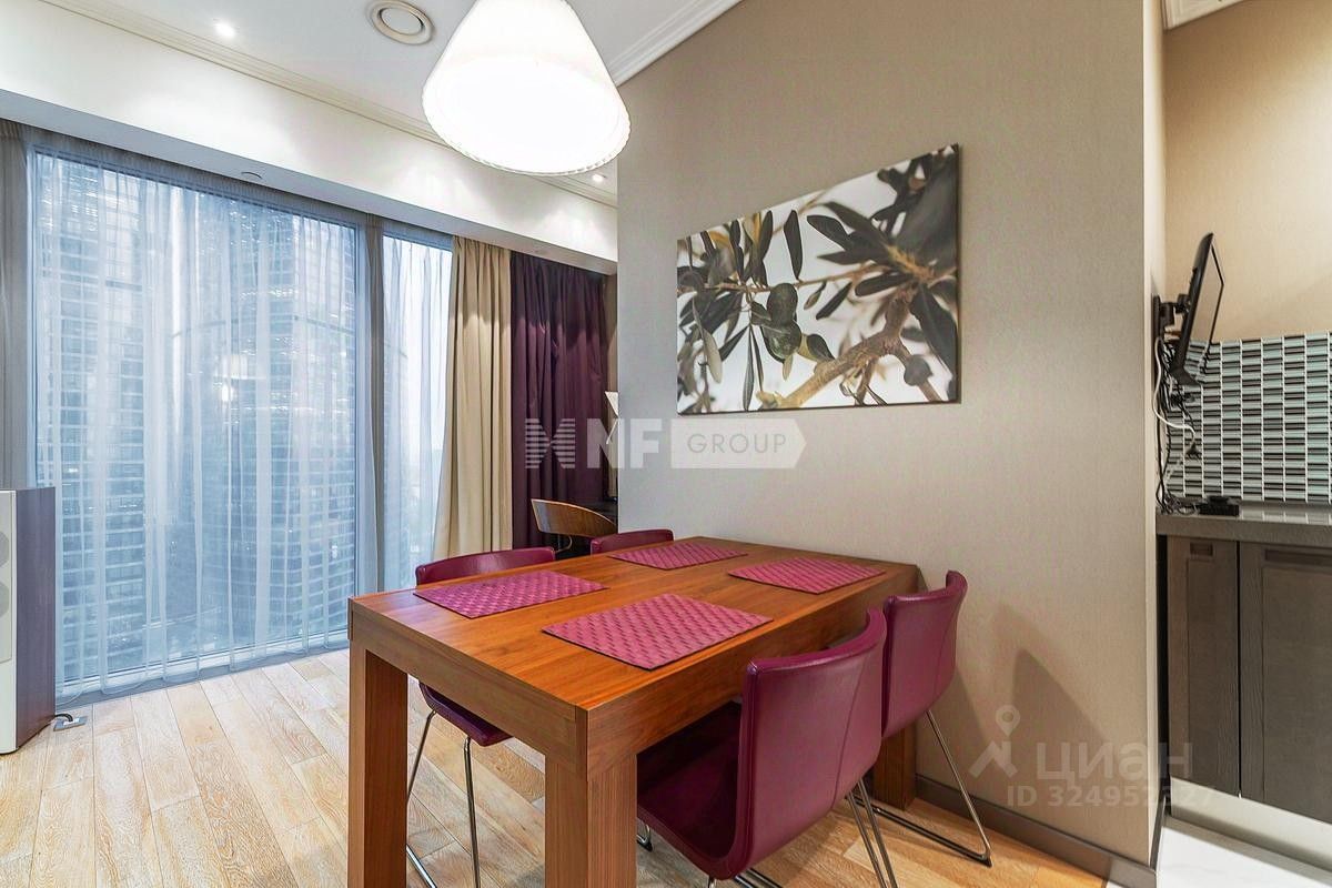 Лот: 27876. Эксклюзивно в продаже только у NF GROUP. Двухкомнатные апартаменты расположены на 23-м этаже башни ''Москва'', входящей в состав многофункционального комплекса ''Город столиц''. Из больших окон открываются виды на панораму Москвы. Внутреннее пространство выдержано в современном стиле. Апартаменты полностью укомплектованы мебелью и бытовой техникой ведущих производителей. Планировкой предусмотрена кухня-гостиная, спальня и два санузла. В комплексе есть подземный паркинг. ''Город столиц'' расположен на территории делового квартала ''Москва-Сити''. Инфраструктура комплекса включает фитнес-центр с бассейном и сауной, салон красоты, SPA-центр, кинозал, торговую зону, кафе и рестораны. В распоряжении жителей услуги консьержа.