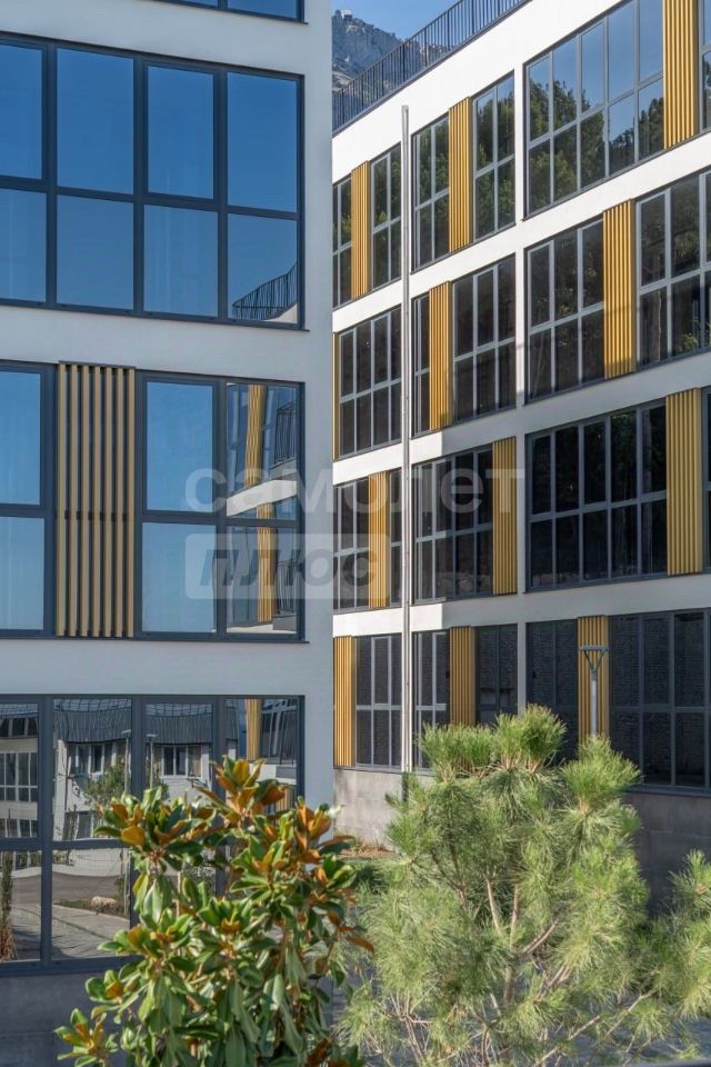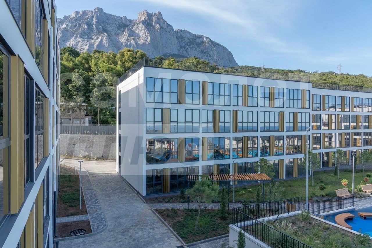 Арт. 127111734 Современный жилой комплекс включает в себя три 4-х этажных здания на 184 квартиры и благоустроенную территорию, проект расположен в г. Алупка между двух величественных панорам: бескрайних просторов Черного моря и завораживающих горных вершин Ай-Петри.Жилой комплекс находится в окружении природных и исторических достопримечательностей полуострова: Воронцовский парк, дворец графа М.С. Воронцова, Ялтинский горно-лесной заповедник и один из самых мощных, красивых карстовый источник Хаста-Баш и канатная дорога ''Мисхор — Ай-Петри'' — все в пятиминутной доступности.Стильные дома, безопасный двор, собственный парк.Свои ландшафтный дизайн включает: туи, пальмы, сосны, а также более 100 видов растении. Двор оборудован террасами и беседками.