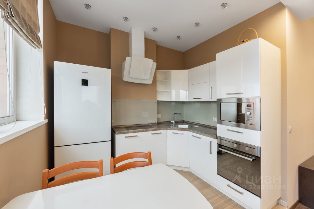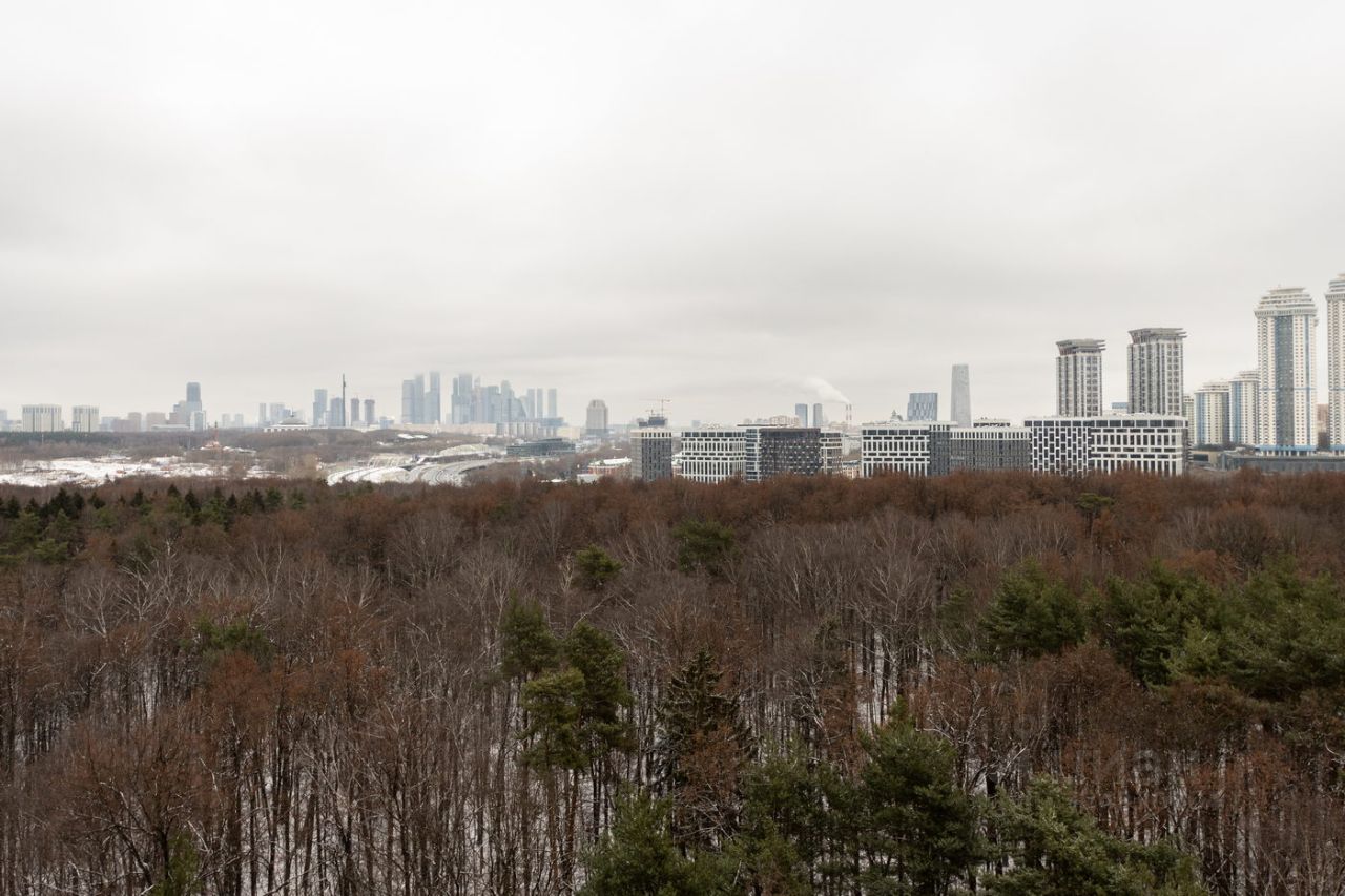 Планировка включает спальню с гардеробной, просторную зону кухни-гостиной и совмещенный санузел с душевой кабиной. Высокий этаж обеспечивает прекрасные видовые панорамы. Из окон открываются живописные виды на Матвеевский лес и парк Победы. Локация идеально подойдет тем, кто ценит тишину и комфорт.