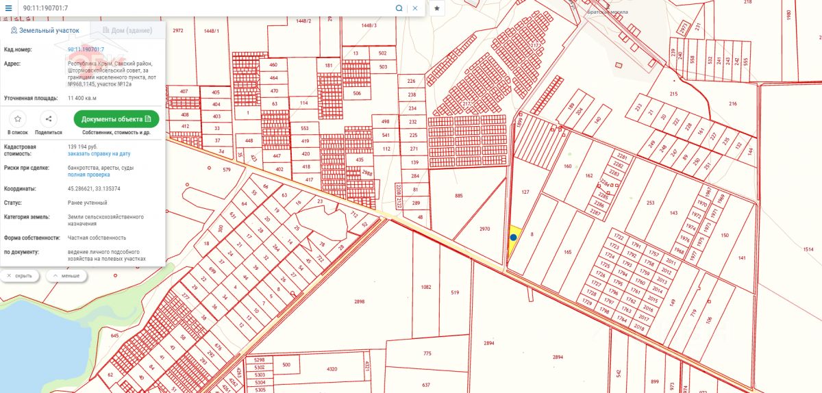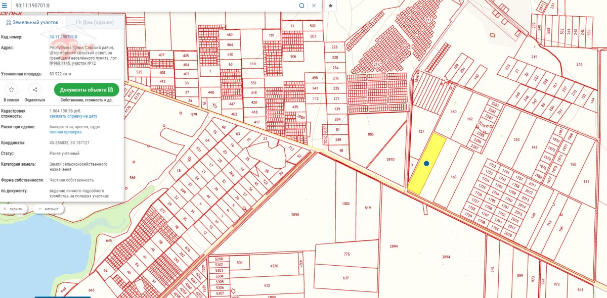 Всего почти 10 гектар, два смежные участка на повороте с трассы Таврида на п. Приветное. Один 83 922 кв.м., второй 12А 11 400 кв.м.