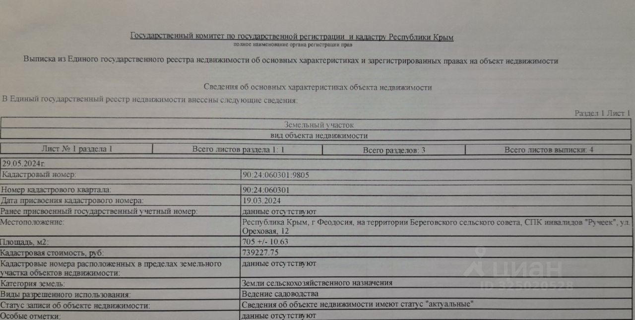 Продам участок в г. Феодосия, СПКинвалидов Ручеёк, ул. Ореховая, уч 12, площадь- 7 сот, коммуникации проходят по границе участка, ведутся работы по газофицированию СПК.