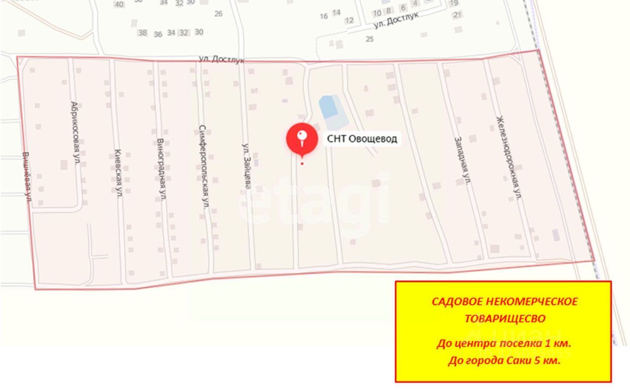 Продаётся земельный участок в СПК ''Овощевод'', Крым Сакский район, село Орехово! Земельный участок площадью 6,1 соток, правильной формы, размеры: ширина - 24м, глубина - 25м. Коммуникации по границе участка: вода, электрический столб. Газификация поселка в ближайшей перспективе - газовая магистраль на соседней улице соседнего микрорайона города Саки. Категория: земли населённых пунктов Вид использования: размещение дачных домов и садовых домов. Улица жилая, кооператив активно застраивается, соседи живут круглогодично.