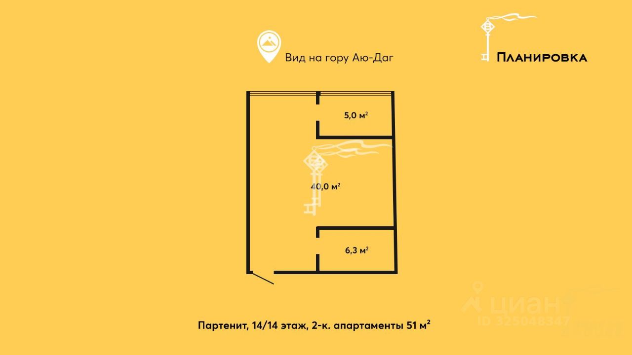 -Оптимальная площадь позволяет спроектировать спальню, кухню-гостиную и гардеробную зону. -Просторная терраса станет идеальным местом для отдыха, её можно использовать как открытую лаунж-зону, застеклить и превратить в зимний сад или создать панорамный кабинет. -Апартаменты под отделку, что даёт возможность реализовать индивидуальный дизайн-проект. -Панорамные окна формируют ощущение увеличенного пространства и открывают виды на море и гору Аю-Даг.