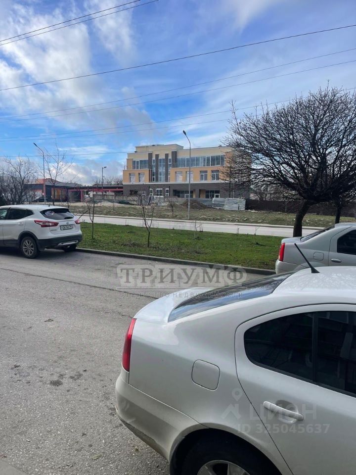 Перед магазином большая стоянка и оживлённая дорога ведущая в глубь района.