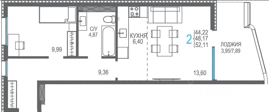 Общая площадь52,11 м2